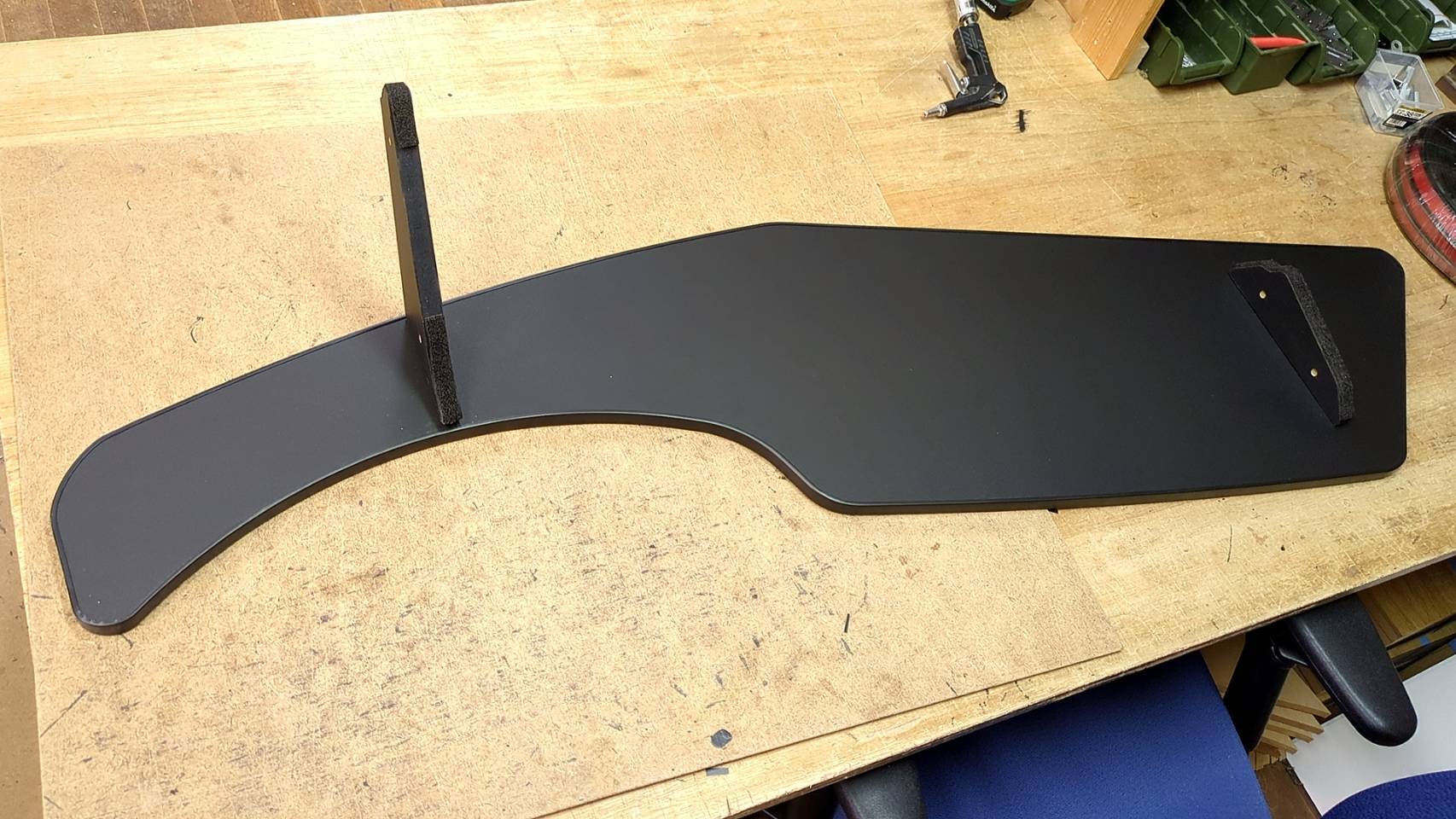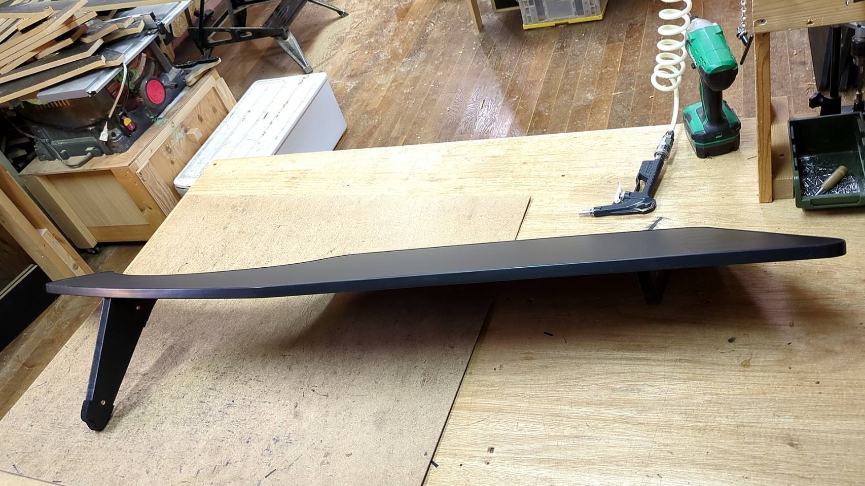 板の反り、太陽光反射防止等を考え、艶消しブラック化粧板15ミリ厚を使用しております。