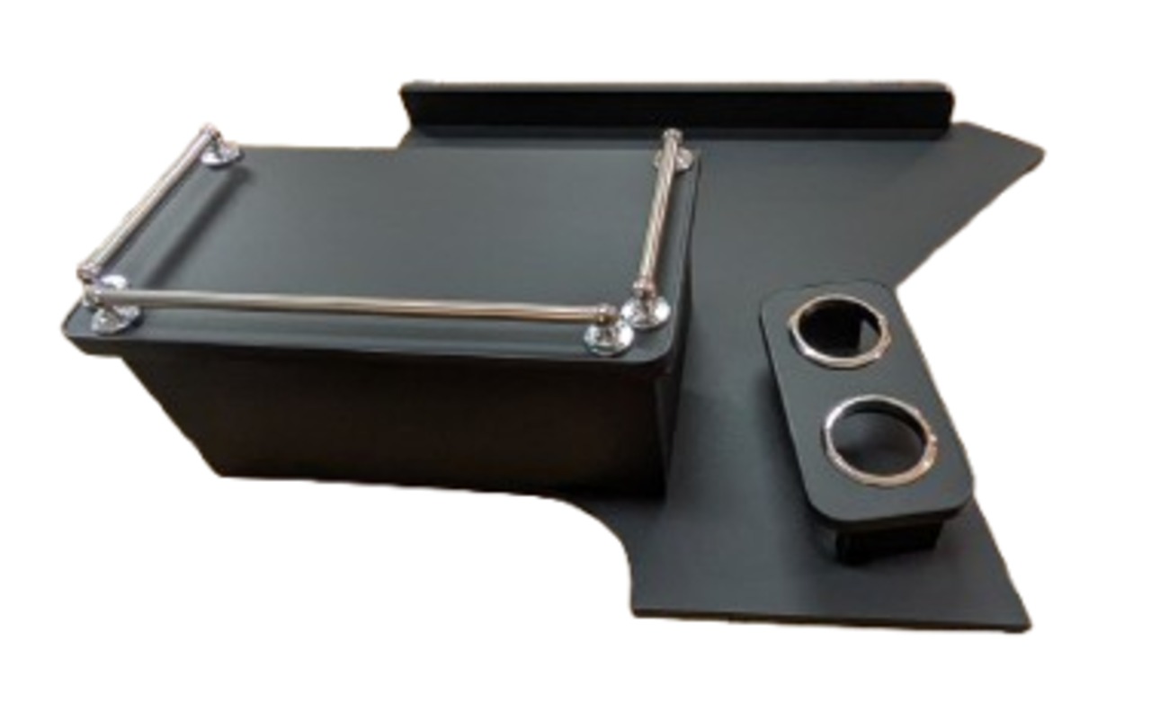 (ネジ4本で固定してある純正コンソールと純正トレイを取り外し、弊社コンソールを取り付けし付属のネジにて固定)